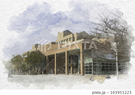 水彩画風 岡山県立大学 講堂 岡山県総社市