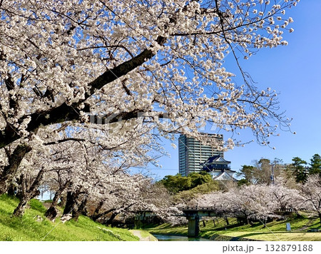青空に映える満開の桜(ソメイヨシノ)〈岡崎城公園/愛知県岡崎市〉
