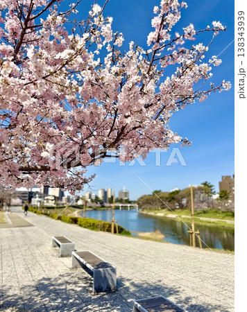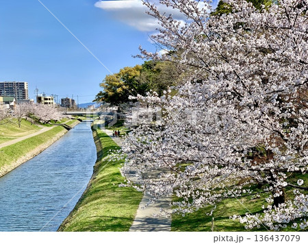 伊賀川ほとりに咲く満開の桜〈岡崎城公園/愛知県岡崎市〉