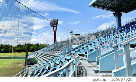 五月晴れの青空と市民球場(岡崎レッドダイヤモンドスタジアム)[岡崎市中央総合公園/愛知県岡崎市]