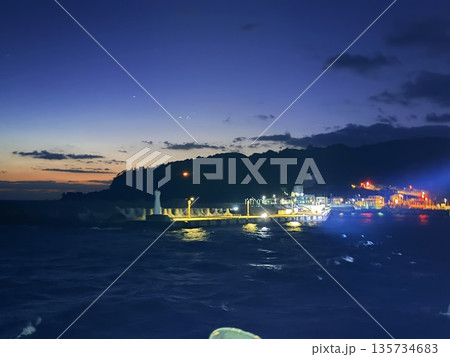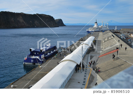 東京都伊豆諸島伊豆大島の岡田港のフェリーターミナル