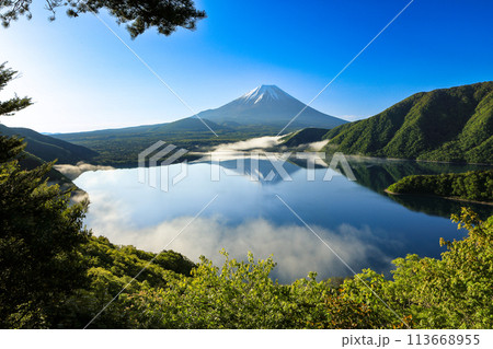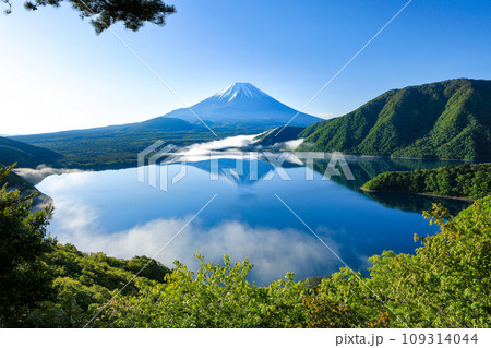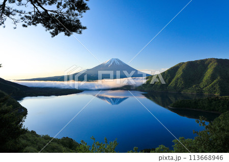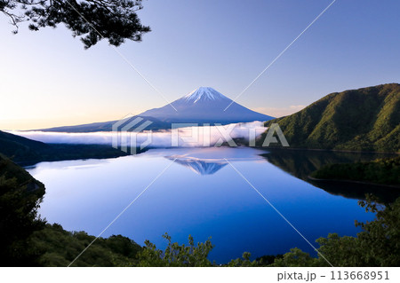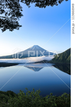 本栖湖の岡田紅陽の逆さ富士 山梨県