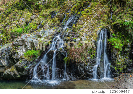 栃木県那須乙女の滝周辺の木に囲まれた清流の流れ