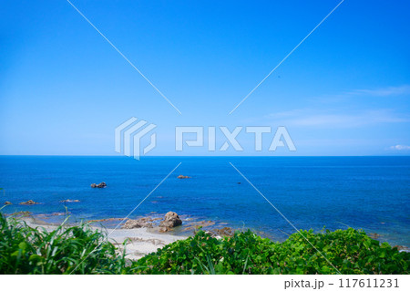 岩ヶ崎海岸より粟島を望む 新潟県村上市