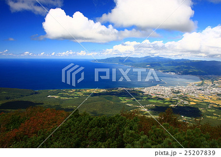 初秋の岩内岳から見る岩内町市街地と日本海