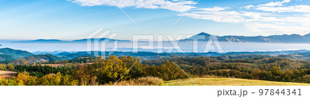 押戸石の丘 草紅葉 朝風景 雲海の眺め パノラマ 【熊本県阿蘇郡南小国町】