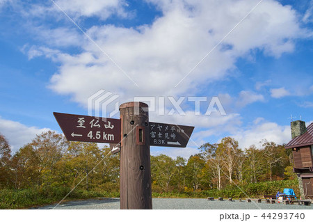 秋の尾瀬 至仏山の山頂から北東側の尾瀬ヶ原、燧ヶ岳方面を見る
