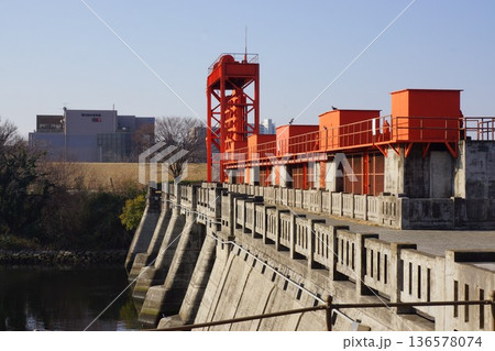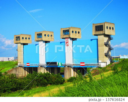 東京都北区志茂の新岩淵水門 青水門の風景