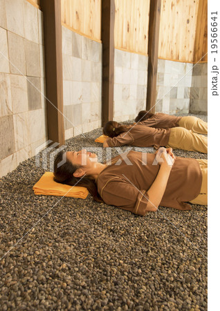 岩盤浴をしている女性