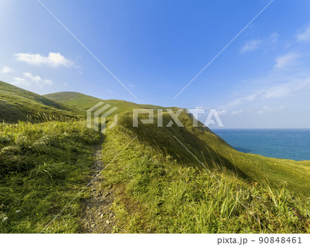 北海道・礼文島の丘陵と青い海 / Rebun Island, Hokkaido