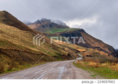 Mountain winding road in Tusheti in Georgia