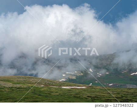 Happo Alpen Line Nature trail, Hakuba, Nagano, Japan, Mountain landscape with clouds and autumn colors