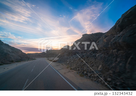 Sunset Highway to Hurghada Red Sea Resort Egypt.