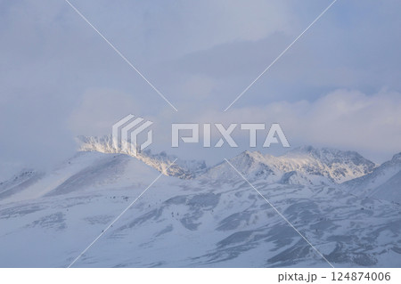 Minimalistic natural backdrop with mountains in winter.