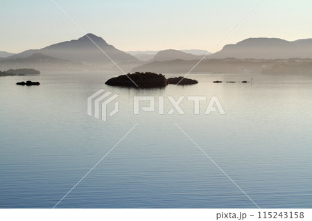 白夜に霞むノルウェー、ベルゲン沖の神秘的な風景