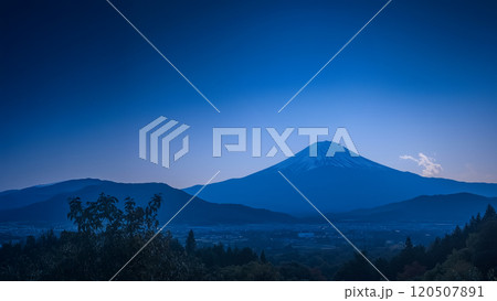 北杜市武川町、春、武川の街並み明け行く残雪の南アルプス