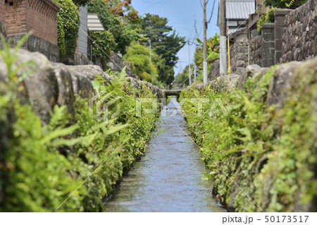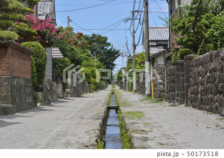 島原市の武家屋敷(鉄砲町)島原城築城外郭の西に扶持取70石以下武士の住まい街路中央の水路は豊かな湧水
