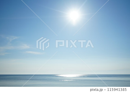 太陽と輝く海 日本海の夏の海1