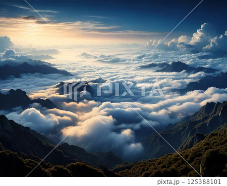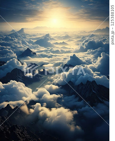 嵐の前の様なドラマティックな雲海(ai生成画像)