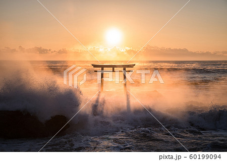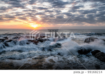 茨城県ひたちなか市 大洗磯前神社 神磯の鳥居の荒波