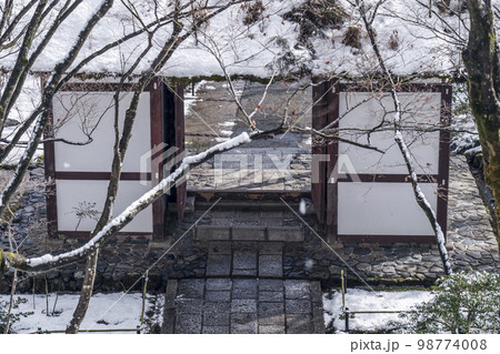 常寂光寺 山門 残雪の朝(京都府京都市右京区嵯峨小倉山小倉町)