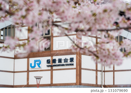 京都、JR嵯峨嵐山駅の春、満開の桜