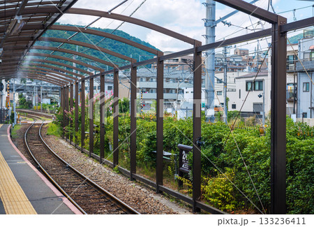 嵐電嵐山駅 キモノフォレストから見える駅ホーム