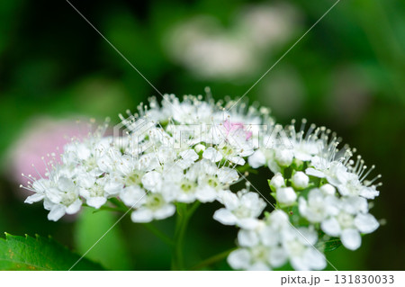 京都 嵯峨野 宝筐院 苔庭の日本庭園に咲く シロバナシモツケ(下野)シモツケ 右京区嵯峨釈迦堂門前