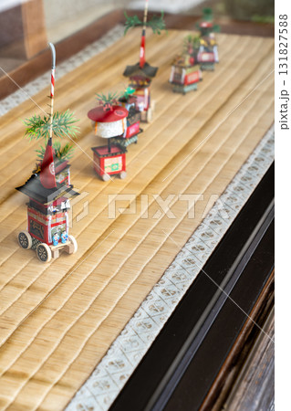 京都 天香堂老舗 嵯峨野店(釈迦堂・二尊院間)店先のディスプレイ(祇園祭の山鉾)