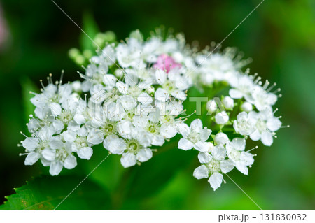 京都 嵯峨野 宝筐院 苔庭の日本庭園に咲く シロバナシモツケ(下野)シモツケ 右京区嵯峨釈迦堂門前