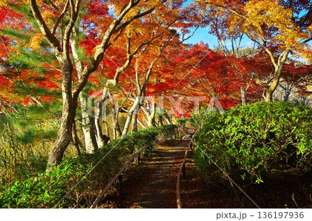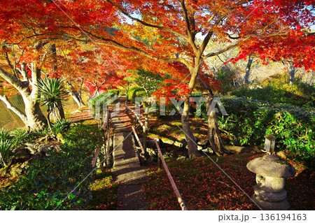 嵯峨野 愛宕山参道の民家の紅葉 京都市右京区嵯峨