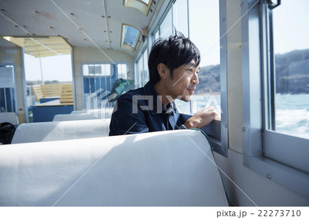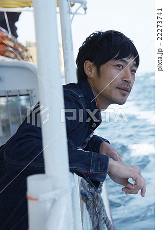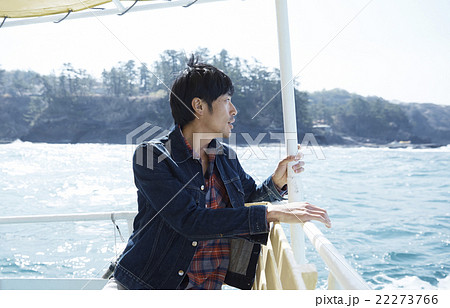 船から景色を楽しむ男性