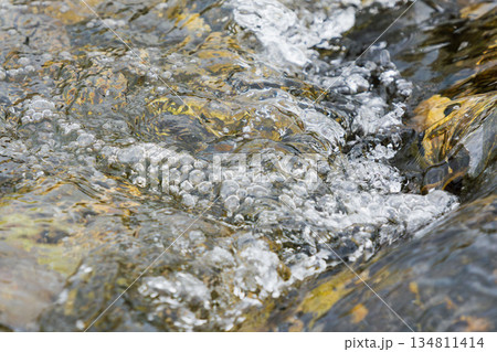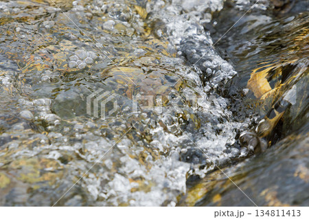 秋の川 清流の流れのアップ91