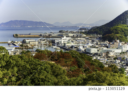 川之江城跡からの眺め 浜公園と川之江港 愛媛県四国中央市