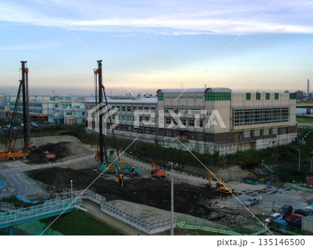 2003年:スーパー堤防工事中の荒川河川敷と舟戸学園(埼玉県川口市)