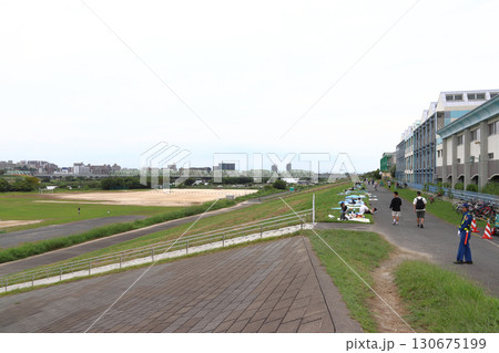 荒川土手に建つ舟戸学園