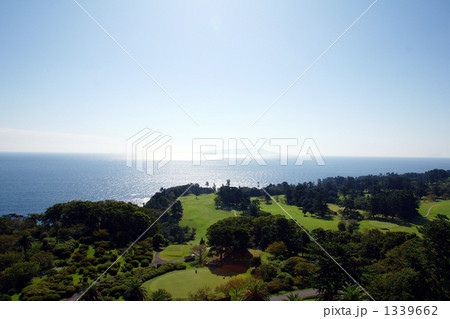 (静岡県)東伊豆・小室山から望む、川奈ゴルフ場、海