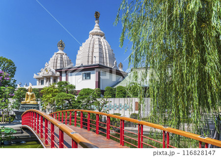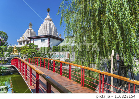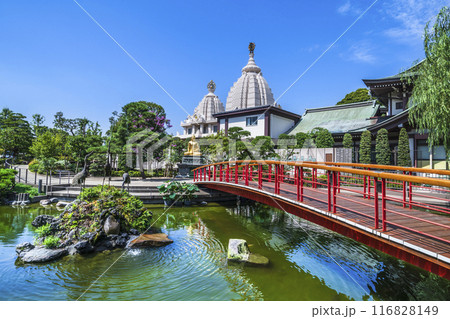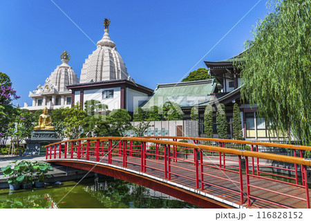 神社仏閣 川崎大師 やすらぎ橋と金色の仏像 神奈川県川崎市