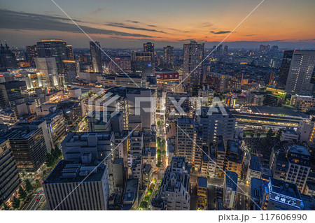 [夜景]京急川崎駅周辺の街並み[川崎市役所本庁舎展望ロビースカイデッキ]