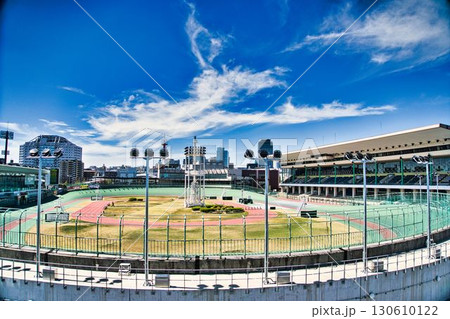 京王閣競輪場(東京オーヴァル京王閣) 夏晴れの青空 神奈川県川崎市からの眺め