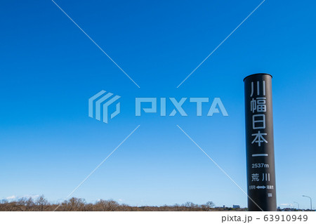 荒川堤 風景 川幅日本一 秩父方面 埼玉県吉見町