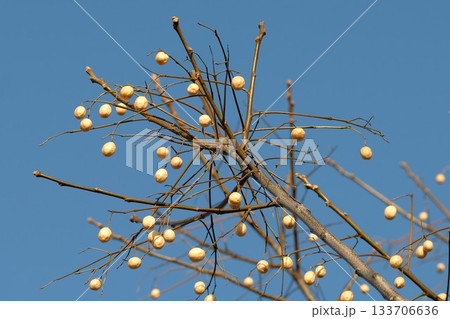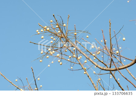 センダンの実と青空の風景