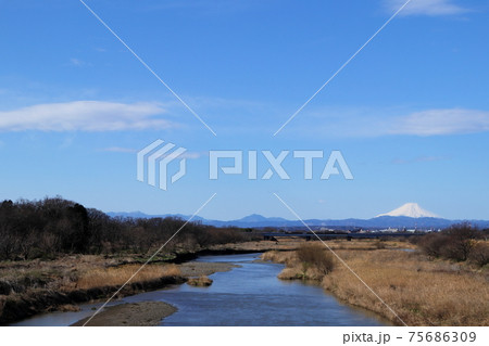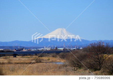 川越市郊外(伊佐沼付近)から見る富士山の美しい姿 埼玉県川越市