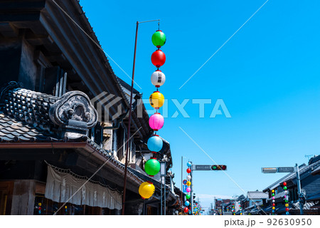 夏祭りの提灯 川越百万灯夏まつり 蔵の街並みと快晴の空 a-1