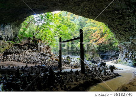 台風で被災した秋の天安河原 宮崎県高千穂町