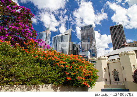 オーストラリア ニューサウスウェールズ州シドニー ロイヤル植物園から市街地の高層ビル群の景色