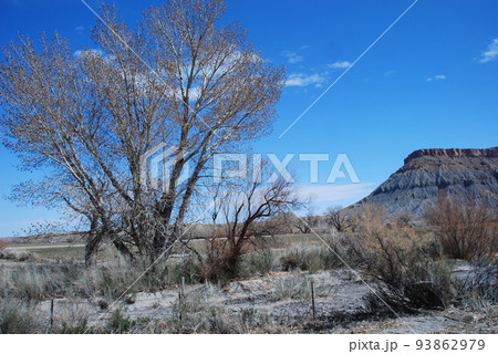 自然、風景、景色、空、快晴、青空、春、4月、山岳、高原、コロラド高原、荒野、地層、岩、堆積岩、砂岩、