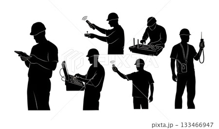 Black Solid Worker Remote Control Silhouettes Set of Six on White Background