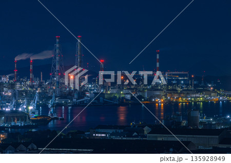 岡山県倉敷市の亀島山花と緑の丘公園から見た水島コンビナートの工場夜景