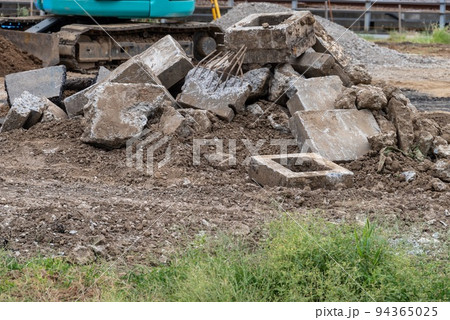 河川工事現場 河川敷に積んだ残土